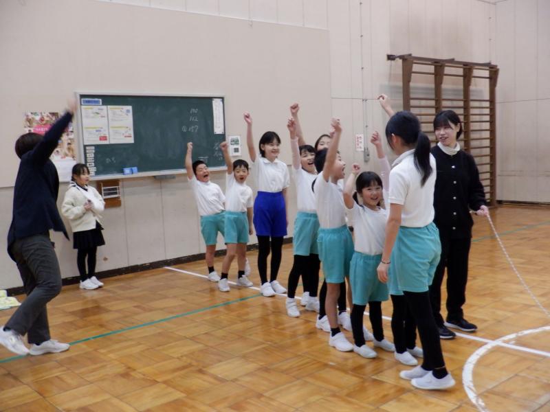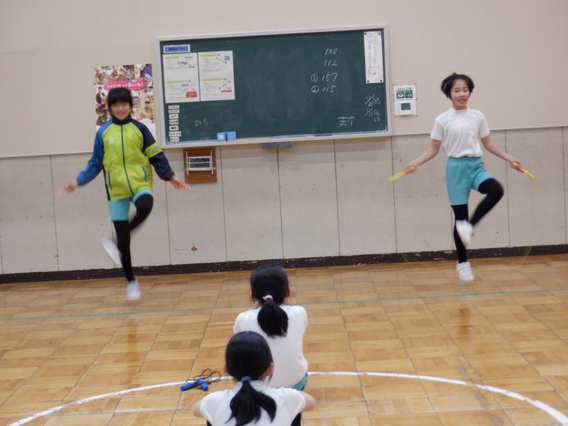 1月26日(金)の4限目になわとび週間の成果を発表し合う「なわとび集会」を行いました。初めは全校での大縄「8の字跳び」です。それまでの最高記録は3分間で112回だったので、記録更新めざして心を1つに挑戦しました。その結果、何と157回も跳ぶことができ、見事に記録更新!!高学年だけならまだしも、1・2年生が含まれての記録です。本当にすごいです!!11人のチームワークのよさを見せつけられました。次は、個人の頑張った技の紹介です。6月2日のなわとび集会の発表と比較してもかなりレベルアップしたことがわかりました。また、失敗してもチャレンジする姿からも成長を感じました。高学年は音楽に合わせて「リズム縄跳び」を披露しました。低学年たちのよい目標になったと思います。この集会を通して、縄跳びのレベルアップを図れたことや心を一つにして大きな目標に向かって努力を続けること、そして達成したときの喜びや満足感を味わうことができたことなど、多くの学びがありました。何より、子どもたちの「最高の笑顔」が嬉しくかった集会でした。