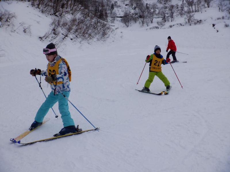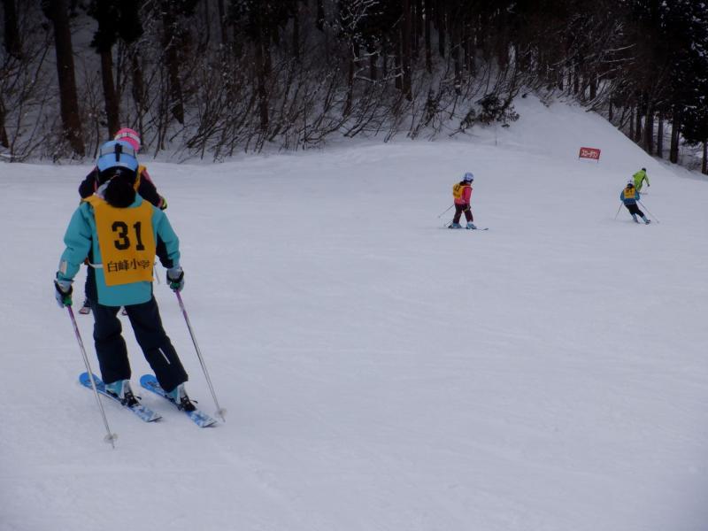 白峰小学校では、3学期の体育の授業にスキーを行っています。今年度も地域の方にボランティアをお願いし、計6回(一里野スキー場4回、白峰アルペン競技場2回)子どもたちに指導をしていただく予定です。スキー授業では、全校児童をレベルに合わせてグループ分けし、丁寧に教えていただいています。特に、今年アルペンスキーを始めたばかりの1年生2名と転校してきた2年生1名の上達ぶりが著しく、ゴンドラに乗って頂上から滑り下りることができるようになりました。板を上手に八の字にし、スピードを調節しながら滑る姿に感動しました。スキーに少しだけ苦手意識を持っている子どもたちも、前回の授業では4回もリフトに乗ることができたと嬉しそうに報告してくれました。成長しています。競技会に参加している子どもたちも、急斜面をかっこよく滑り下り「さすが!」といった感じです。今週からは白峰アルペン競技場で授業を行います。斜面が急になるので、さらに一人一人レベルアップをめざして取り組むことでしょう。ケガのないように気をつけながら、めあて達成めざして頑張ってくださいね。ご指導くださっている地域の方々には、子どもたちのレベルに合わせて、わかりやすく教えていただき、本当にありがとうございます。お陰様で子どもたちのスキー技能がどんどん向上しています。引き続き、ご指導の程よろしくお願いいたします。