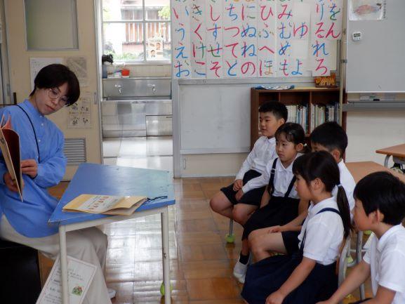 図書館の利用促進と読書習慣の定着を目的に、1学期読書週間が行われました。取組内容は、以下の通りです。1.23日まで毎日朝読書(文章の本)2.一人3冊まで貸し出し3.貸し出し目標6ポイント4.先生のおすすめの本の展示5.読み聞かせ ①先生読み聞かせ隊(山本先生:1・2年生、石橋先生:3~6年生) ②パウロ先生による読み聞かせ:「はらぺこあおむし」「はらぺこあおむし 英語でもよめる」【エリック・カール:作 もりひさし:訳(偕成社)】を英語と日本語で読み聞かせ ③6年生児童による読み聞かせ:「せんたくかあちゃん」【さとうわきこ:作(福音館書店)】を1~5年生に読み聞かせ ※下学年のためにたくさん練習し、それはそれは素晴らしい読み聞かせでした。5年生児童が「来年は、私もこんなふうに上手に読み聞かせをしたい」と感想を述べていました。この感想も素敵ですね。6.アニマシオン(本を使って楽しみながら読書の力を伸ばすプログラム) 図書館司書の吉田先生が「バムとケロのそらのたび」【島田ゆか:作絵(文溪堂)】の読み聞かせと紙飛行機の本の紹介を行い、その後、全校みんなで紙飛行機を作り、飛ばして遊びました。