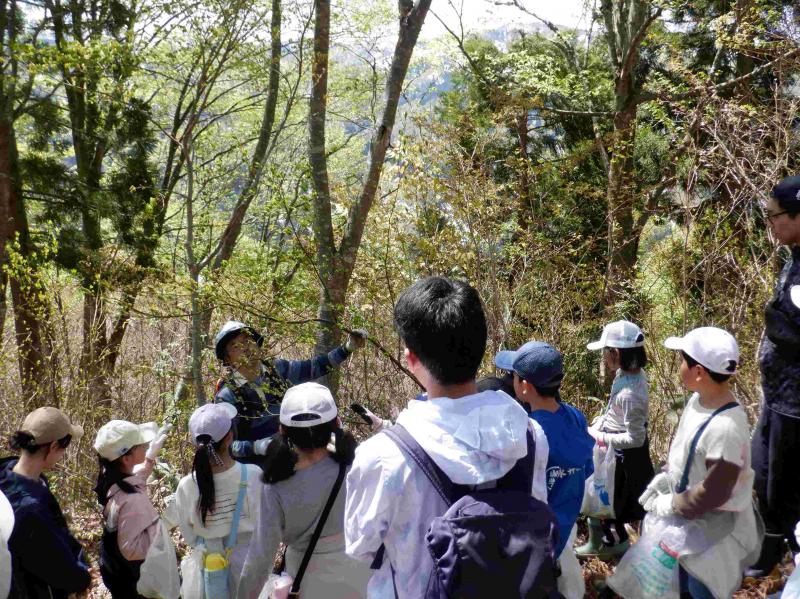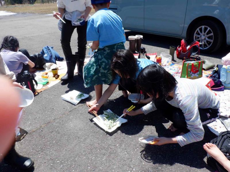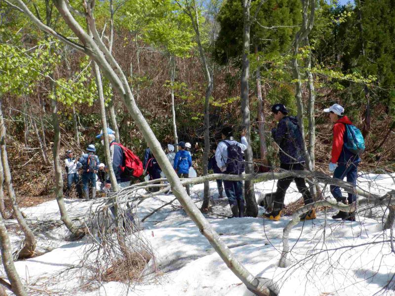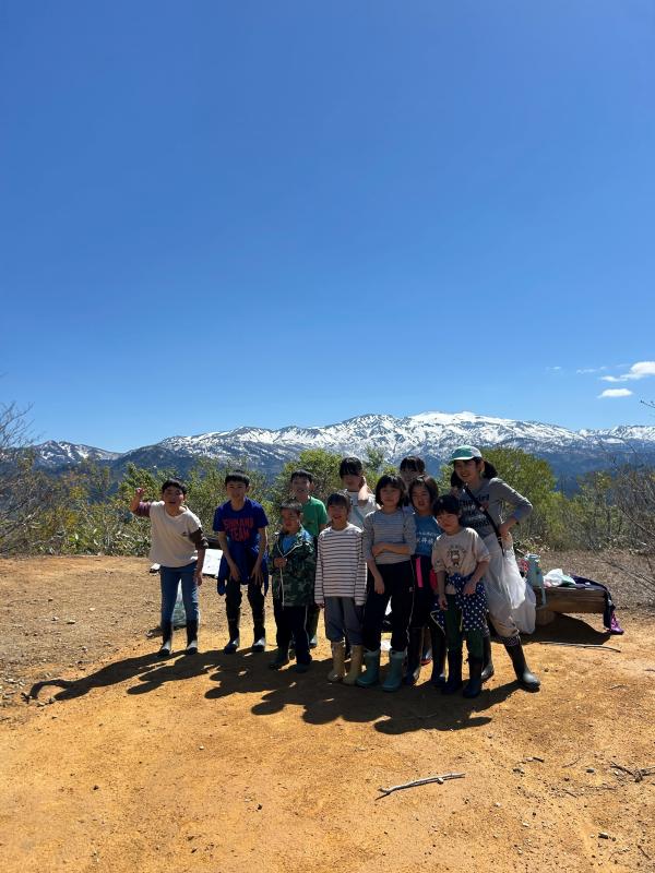 春の爽やかな青空の下、西山山頂からクロスカントリー場周辺のトレッキング&山菜採りを行う白峰小学校ならではの行事、「春の校外学習」が実施されました。 今年は雪解けが遅く、西山山頂は5月に入ってもまだ雪が残っている状態であり、場所や活動内容の変更が必要ではないかと内心とても心配していました。でも、当日は、残雪の上を歩くことはありましたが、美しい新緑の林の中を、山頂では雄大な白山を眺め、散策途中にはイワウチワの可憐なお花に癒やされ、全校児童11名で元気よく散策することができました。そして、コシアブラやクロモジ、リョウブ等、美味しい木の芽もたくさん発見!!「採りたい」と意気込み、少し高い木に登りながら木の芽をGetする児童もいました。また、雪解けが遅いため、地面から生える山菜はほとんど見つかりませんでしたが、ふきのとうやヨモギ、アザミ等はしっかりGet!カモシカ(お弁当を食べる場所)にもどる頃には、どの子の袋もずっしりと重たいくらいになっていました。 カモシカ到着後は、楽しみにしていたお弁当タイムです。みんなで円く集まって楽しそうにお弁当を食べていました。そして、待ちに待った採りたて&揚げたての山菜の天ぷらが完成!お腹いっぱい食べていました。 最後は、広~い広場で5年生が準備してくれた全校遊びを楽しみ、11人の絆がさらに深まりました。5年生の皆さんどうもありがとう!! 大自然を五感を働かせて思い切り楽しみ、学んだ白峰っ子たちは、ますます感性豊かに成長していくのではないでしょうか。自然の恵みも自然の楽しさも、そして自然の厳しさも経験することができた素晴らしい春の校外学習でした。 地域の先生としてご指導ご協力くださいました織田様、誠にありがとうございました。