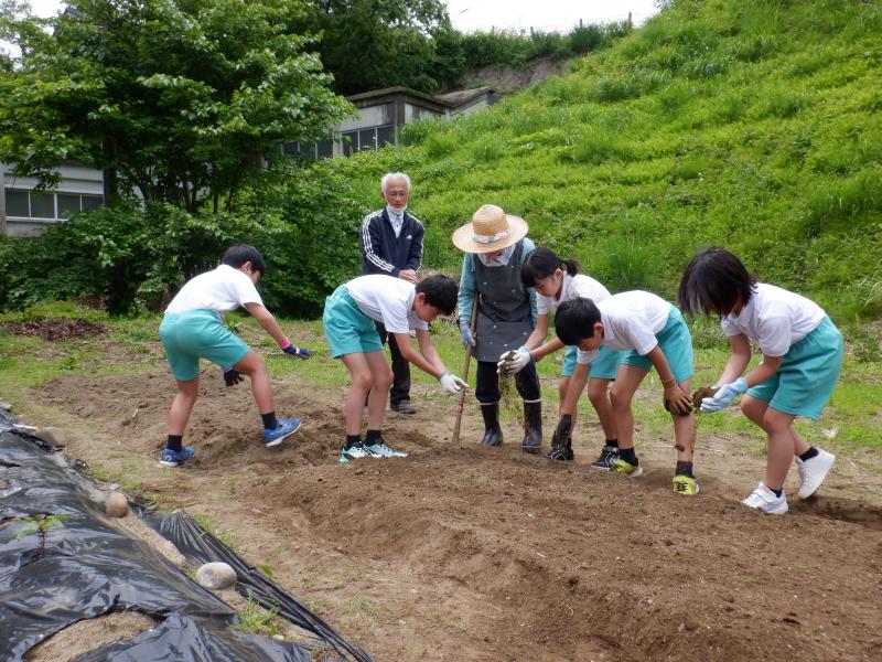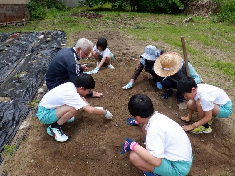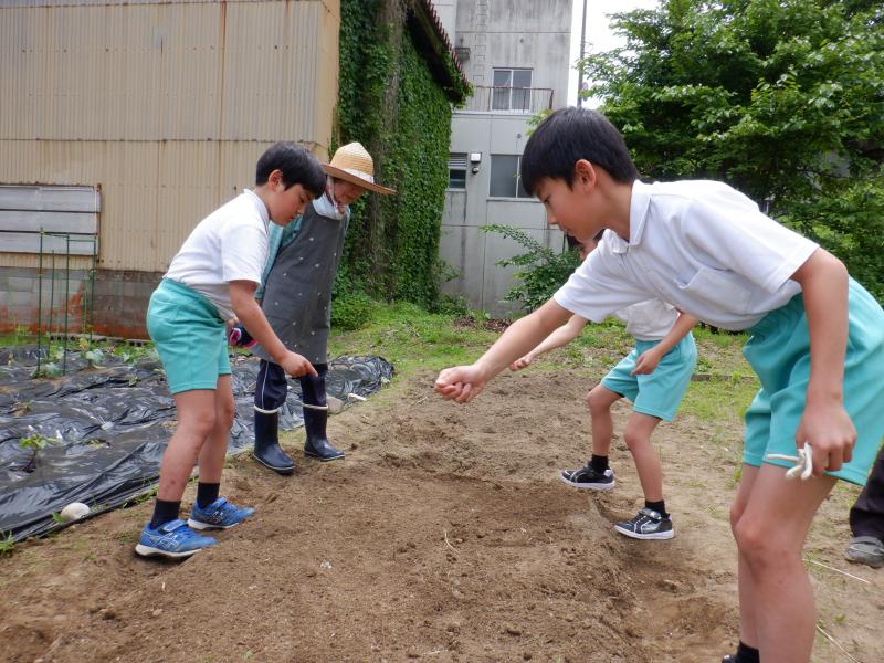3・4年生がカマシの種まきを行いました。カマシとは、シコクビエのことで、白峰地区で古くから栽培されている雑穀の一つです。白山麓民俗資料館のほか地域の数名の方が栽培しており、白峰小学校でも昨年から栽培を始めました。現在3年生を中心にカマシについて学習を進めているところです。 種まきは、地域のカマシの先生である織田さんと刈安さんにご指導いただき行いました。これまでいろいろな植物の種まきをした経験から、「小さい種だからパラパラとまいてから、土をかぶせるんじゃないかな」など、予想しながらお話を聞いていました。大正解ですね!また、発芽後は、間引きが必要であること、植え替えすることなども子どもたちが予想していました。これまた大正解です。学習したことがしっかりと積み上がり、活かされています。 これからも織田さんと刈安さんにいろいろとご指導いただく予定です。よろしくお願いいたします。そして、3年生が中心となって行うカマシの学習がどのように展開されていくのかとても楽しみです。