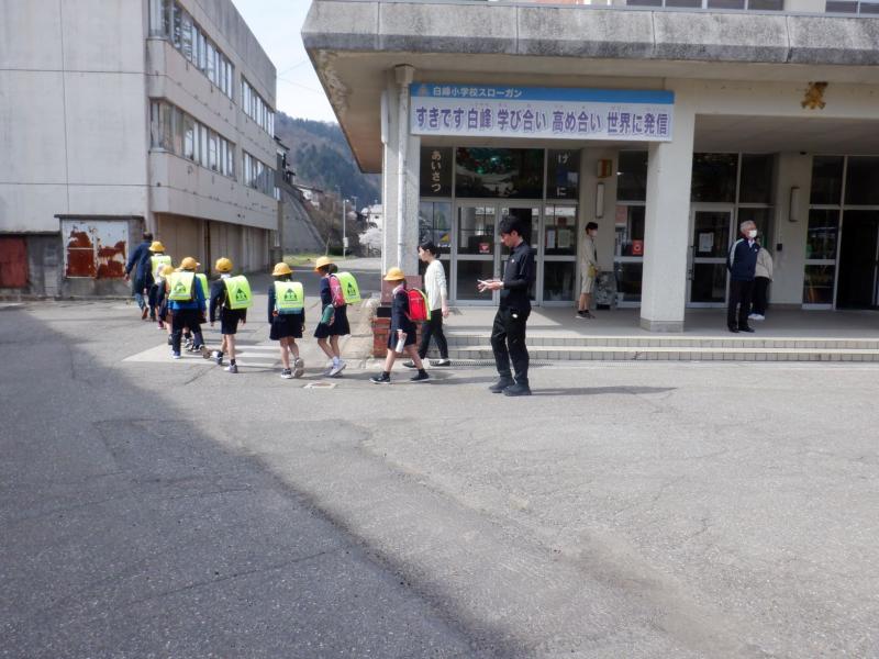 入学式から1週間が経過し、この日から1先生の給食が始まりました。給食のメニューや量など、少し不安そうな様子も見られましたが、上級生との初めての給食は、見事に完食!!とても嬉しそうでした。美味しく食べることができてよかったです。その後、1年生は初めて5時間目までの授業を行い、下校前に集団下校指導も行いました。16日の登校から、冬道から夏道に変わります。プレイルームで集合時刻や集合場所、通学路の危険箇所等を共有した後、みんなで交差点や横断歩道での交通ルールや道路の白線の内側を安全に歩くことなどを確認しながら下校しました。交通ルールについて一人一人意識を高く持ち、安全に登下校できることを願っています。見守り隊の皆様や地域の皆様のおかげで、子どもたちは毎日安全に登校することができます。ありがとうござます。これからも子どもたちが安全に登下校できますよう、引き続き見守りをお願いいたします。