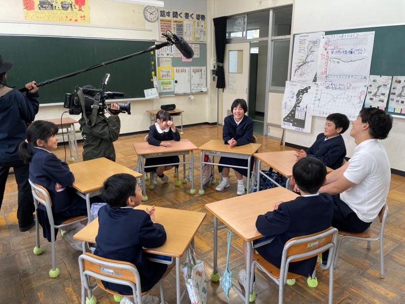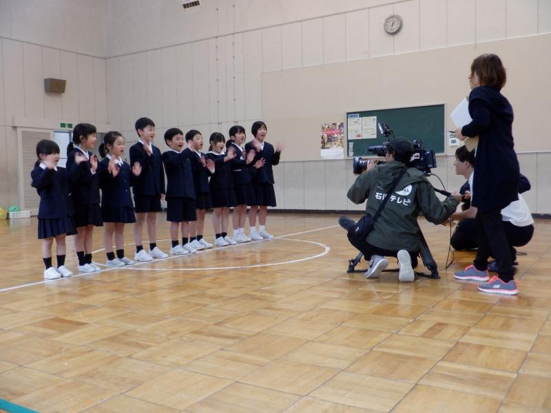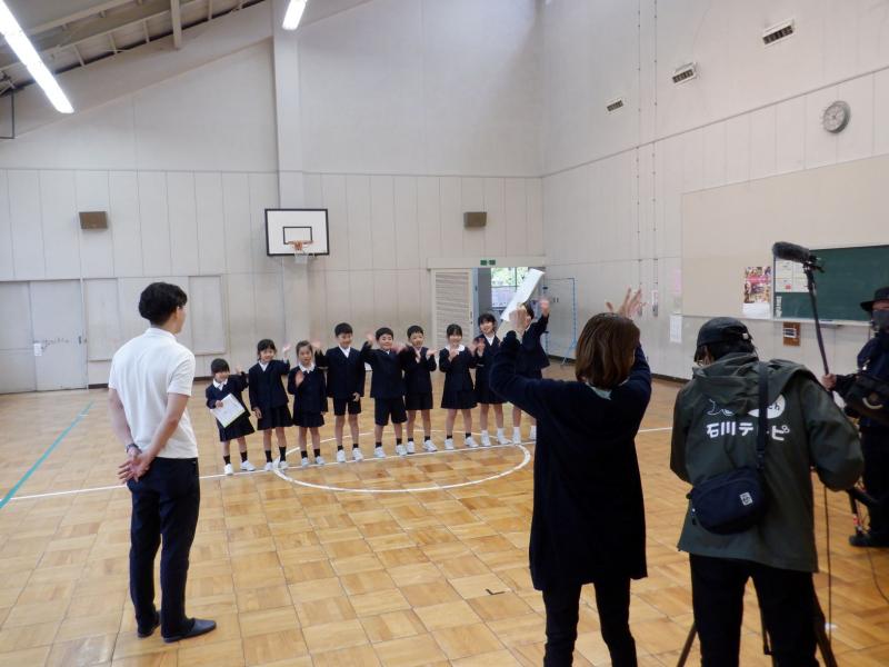 11月2・3日に開催される「みんなのいしかわまつり」のステージ発表に出演することが決まり、この日に取材が行われました。ステージ発表のテーマは「校歌で絆プロジェクト」です。「校歌」であればどのようなパフォーマンスでもよいということで、ステージでの発表方法等を話し合いました。当日、「サプライズ取材にしたい」という石川テレビさんのご希望により、取材があることについて、子どもたちには内緒にしてありました。そして、舞台発表に向けて校歌の練習をするという名目で子どもたちに集まってもらい練習をしている最中に「こんにちは~」と突然にやってくる・・・、という段取りでした。案の定、子どもたちは驚き固まってしまいましたが、その後は、いつも通り元気に明るく校歌を歌い、一生懸命に話し合いを行いました。白峰愛にあふれた話し合いになり、ステージでは地域の方と一緒に校歌を歌ったり地域の民謡をおどったりしたい、白峰のいいところやじげ弁(方言)も紹介したい等、盛り上がっていました。11月のステージ発表が楽しみになりました。保護者の皆様、地域の皆様、子どもたちから協力の依頼がありましたときは、快くお引き受けいただければ幸いに思います。よろしくお願いいたします。なお、石川テレビ公式YouTubeチャンネルにも動画配信されますのでご覧ください。