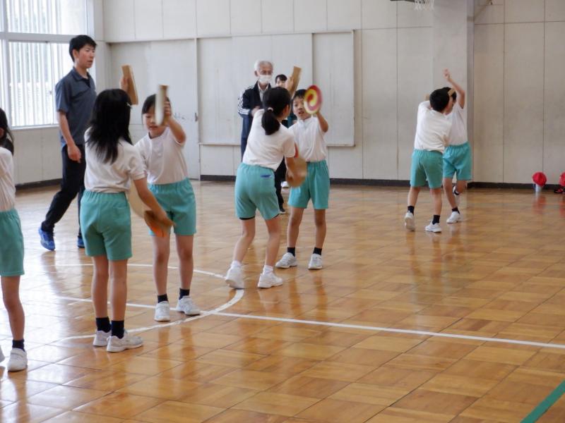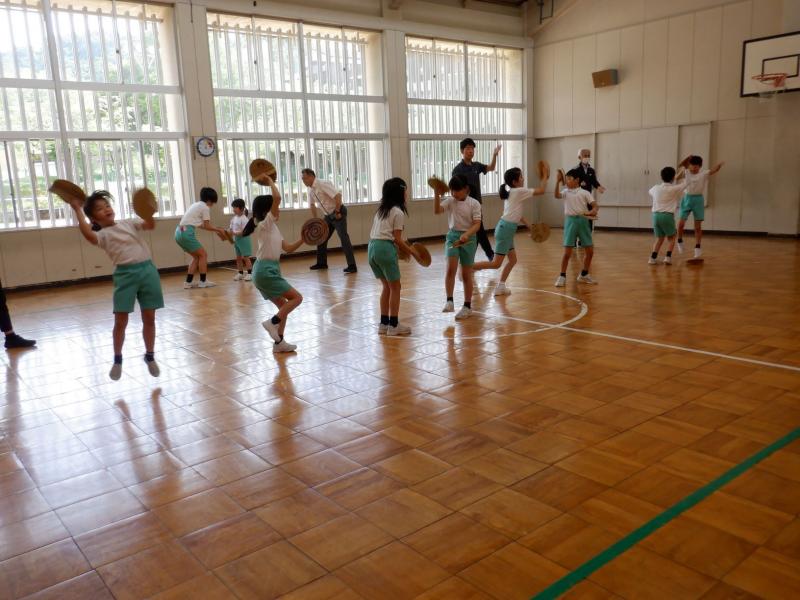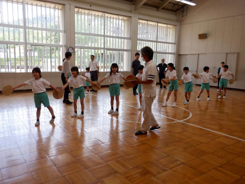 白峰小学校の子どもたちは今年も白山まつりの舞台踊り(7月13日【土】)に参加します。そこで、6月18日(火)の5時間目に地域の先生である水上さんにご指導いただき、全校みんなで桑島の民謡「いそぶし」の練習を開始しました。 2年生以上は、昨年踊った経験もあり、あっという間に全体の流れを思い出して踊ることができました。リズムや手足の動き、左右など細かなところはこれから練習を重ねて上達をめざします。1年生は、今年初めて踊るのですが、ダンス大好きっ子なので最後まで集中して練習に臨んでいました。そして、6年生が最初から最後までつきっきりで教えていたこともあり、1回目にしてはや踊りの形が出来上がっていました。さすが、頼りになる6年生です。なべぶたを手に踊る「いそぶし」は、テンポがよく元気で明るくてひょうきんであり、子どもたちみんなが大好きな踊りです。にこにこと楽しそうに練習する姿に「さすが、白峰の血が流れているなぁ」と今年もまた感心してしまいました。伝統はしっかり次の世代に受け継がれています。本当にすごいことだと嬉しくなります。 これから地域の方との練習や学校での練習を経て、7月13日(土)の白山まつり本番を迎えます。一人一人が舞台で楽しく元気よくいきいきと活躍できることを願っています。保護者の皆様、地域の皆様、応援をよろしくお願いいたします。