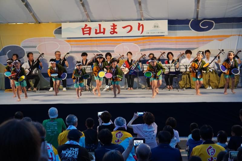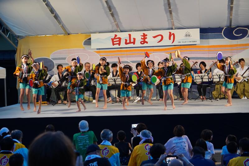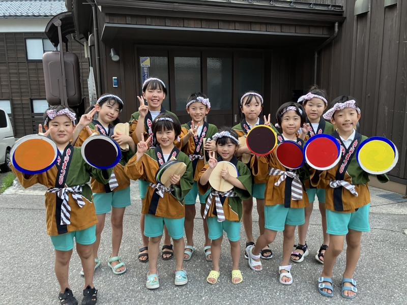 白山まつりの舞台踊りではたくさんの皆様の声援を受け、10名の子どもたちは元気いっぱいに楽しく「いそぶし」を披露することができました。大勢の観客の皆様の前でも臆することなく堂々と発表する姿に、立派な白峰っ子たちだと心から嬉しく、そして、誇らしく思いました。 舞台に上がる前に、とても緊張していた子もいたのですが、「そ~れっ!」のかけ声をリハーサルの時より大きくすること、手をしっかり振って踊ること、腰を低く落として踊ることなど、子どもたち同士で確認したり声をかけ合ったりしていました。昨年の発表を超えたいという並々ならぬ意気込みを感じ、感動したほどです。 発表を終え、拍手喝采の中、舞台を降りるときの安心した様子、満足げな表情、満面の笑みに1人1人が全力で発表できたことを実感しました。ものすごく緊張したはずですが、これまで何回も練習をしてきたみんなとの舞台だったので安心して自信を持って踊り切ることができたのでしょう。貴重な経験ができたことに感謝し、また、地域に貢献できたことに喜びを感じながらますます白峰を大好きに、そして、伝統を守り受け継いでいきたいという思いを持って欲しいと願っています。保護者の皆様、桑島民謡保存会の皆様、白山まつりまでの間、様々な準備、熱心なご指導をありがとうございました。地域の皆様もたくさんの温かな声援、本当にありがとうございました。