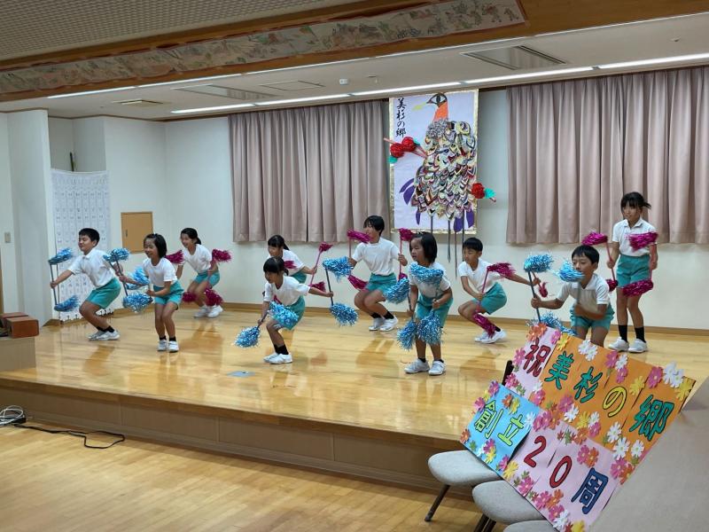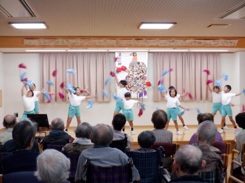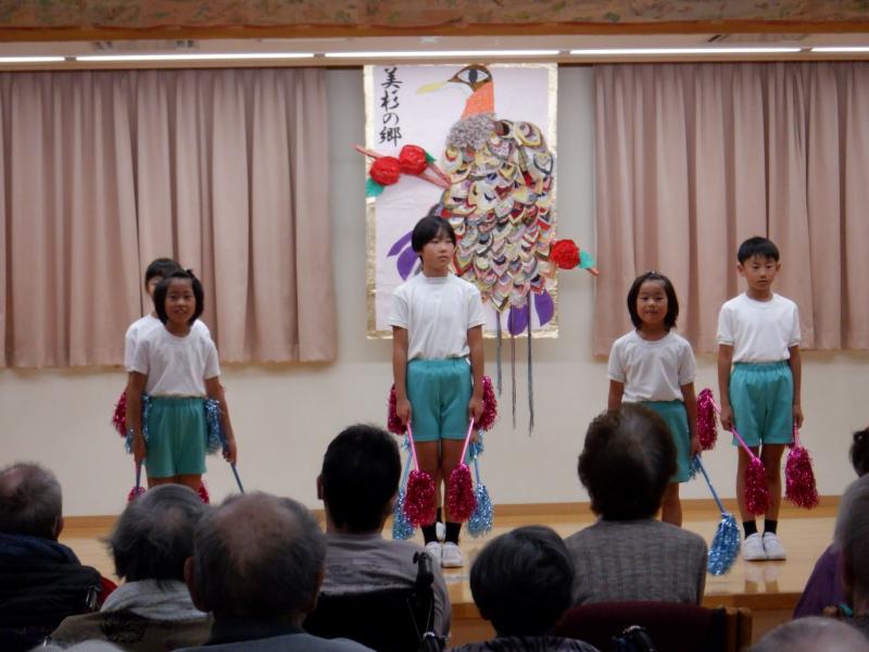 5年ぶりに「特別養護老人ホーム美杉の郷」を訪問し、創立20周年記念イベントの舞台発表に参加してきました。 当日は、運動会で披露した「マツケンバンバン」を発表してきました。子どもたちの元気なダンスで入所者の皆様に笑顔になっていただきたいという気持ちで、全力笑顔で発表してきました。また、この日は、2年生が全校の代表として初めと終わりのあいさつを担当しました。休み時間にあいさつの声が校長室に何回も聞こえてくるほど一生懸命に練習していたので、その成果が見事に発揮されていました。頑張りました。 入所者の皆様も手拍子をしてくださるなど、楽しんでいただけたようです。職員の方々も「子どもたちが来てくれるとみんな嬉しそう」「子どもは賑やかでいいです」と声をかけてくださいました。 このような機会があれば、またいつでも訪問したいと思います。
