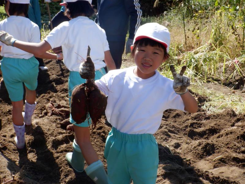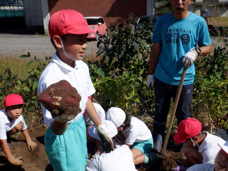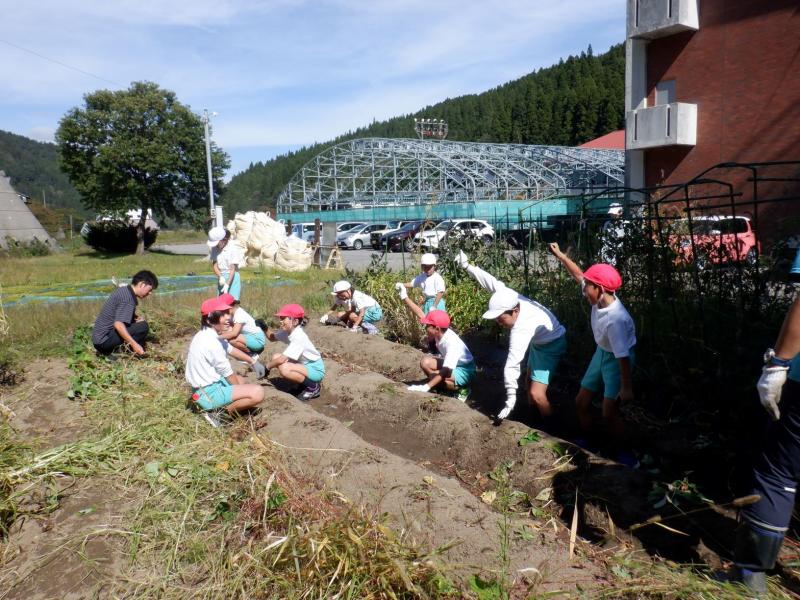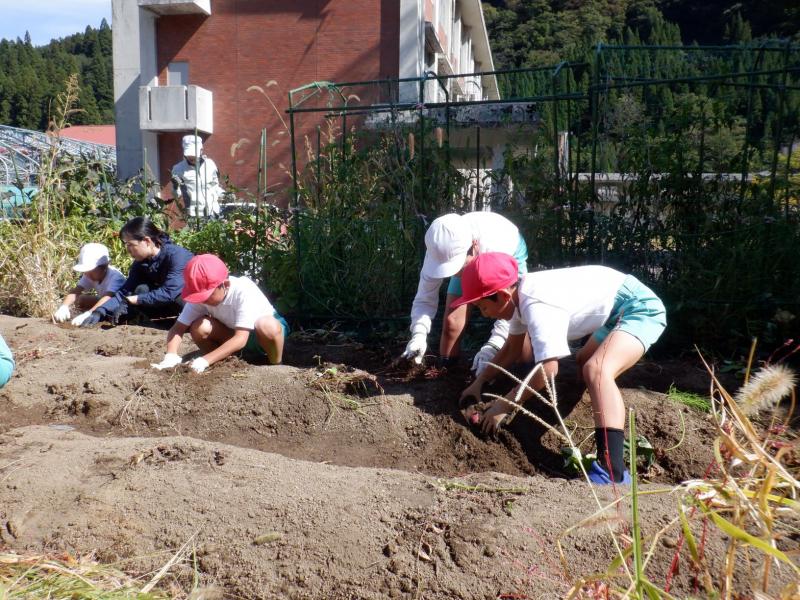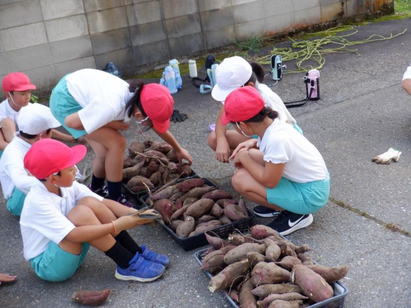 10月17日(木)に全校でさつまいも掘りをしました。昨年度はさつまいもが不作であり、掘っても掘っても細くて小さなさつまいもしか収穫できませんでした。ところが今年は、大豊作!!「うわぁ~。でっかーい!」とあちらこちらから歓声が上がるほど、さつまいも畑は、まるで宝探しをしているような様子でした。また、低学年の子どもたちは、さつまいもが大きすぎてなかなか抜けず、最後は友達と協力しながら掘っていました。今年は大きなさつまいもがどっさり収穫できたので、お家に持って帰ることもできました。子どもたちが持ち帰ったさつまいもは、きっと、おいしく召し上がっていただけたことだと思います。収穫したさつまいもは、収穫際でめった汁や焼き芋にしていただきます。今からとても楽しみです。