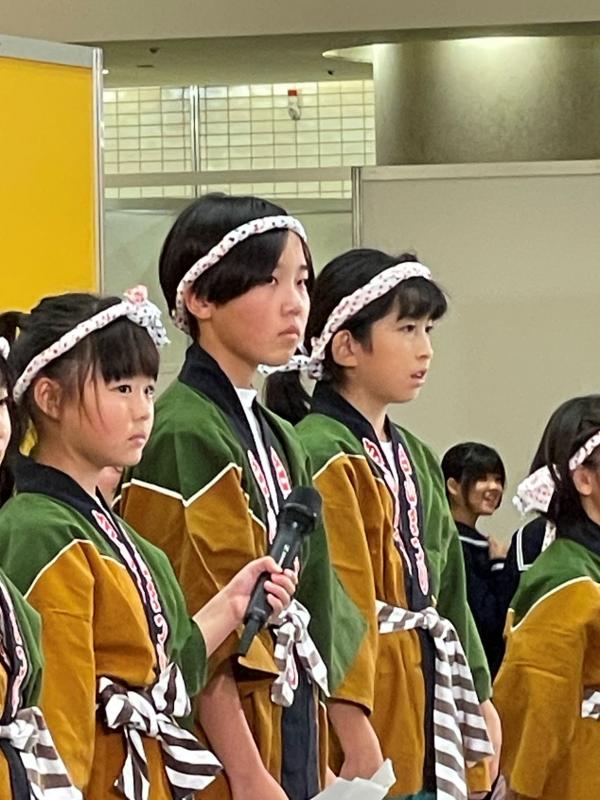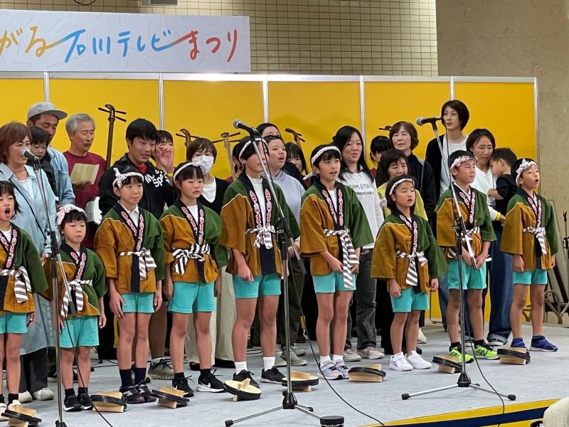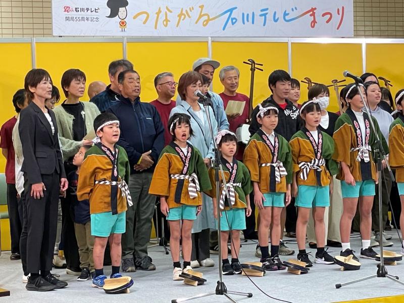 11月2日(土)に金沢駅もてなしドーム地下広場で開催された「つながる石川テレビまつり」の舞台イベント「校歌で絆プロジェクト」では、地域の方々にもご参加いただき、無事に「地域との絆」をテーマとした舞台発表をすることができました。 当日は、打合せだけの一発勝負の舞台でしたが、さすが本番にめっぽう強い白峰っ子たち。いつも以上に張り切り、立派に桑島民謡「いそぶし」の踊りと校歌を披露することができました。元気いっぱいに踊ったり歌ったりする姿に会場も盛り上がっていました。もちろん、地域や保護者の皆様も一緒に舞台を盛り上げてくださり、子どもたちも心強かったと思います。 この発表のリーダーは、6年生児童です。会場に到着したときには緊張しすぎていつもより口数が少なく、表情もこわばっていました。舞台では「白峰の素晴らしさ」を伝えたり、方言で話したり、舞台下で待ち構えている地域や保護者の方々に一緒に校歌を歌おうと呼びかけたり、一人で多くの役割を担っていたからです。ところが、舞台が始まると、緊張していたのが嘘のように堂々とした態度でリーダーとしての役割をしっかりと果たしていました。また、アナウンサーさんからの突然のインタビューにも大人顔負けの見事な対応ぶりであり、駆けつけた地域や保護者の方々も感心するほどでした。実に頼もしい6年生、下学年の憧れであり素晴らしいお手本です。 残念ながら、ゲストの「キンタロー。」さんが選ぶ「一番心を揺さぶったチーム」には選ばれませんでしたが、私の中では、断トツに「ジゲとシマの子ーらと大人衆ら」(チーム名)が最優秀賞です。子どもたちの一丸となった頑張り、地域の皆様の温かいお心、保護者の皆様のご理解とご協力があってこそ実現した舞台でした。本当にありがとうございました。