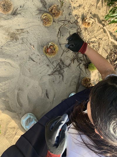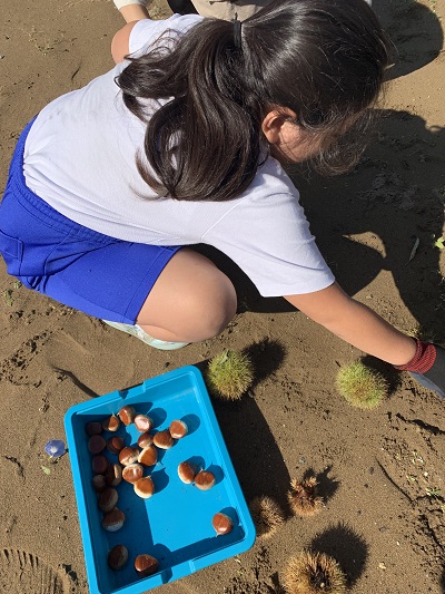 畑にあった栗をとりにいきました。