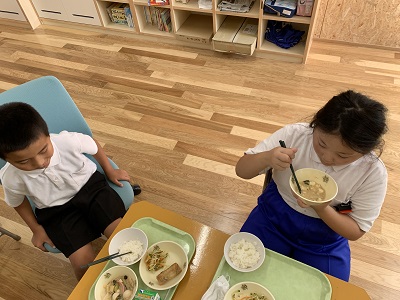 今日は特別支援学級で集まって食べました。