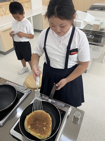 その後、栗のホットケーキを作って食べました。