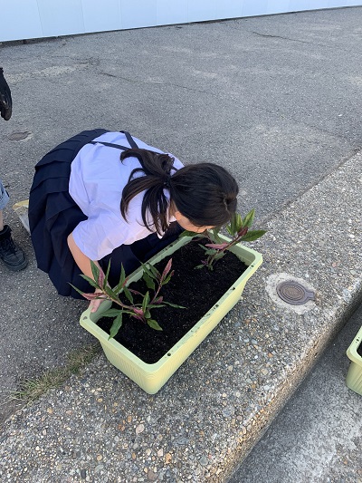 重たいプランターを運んだり、水をやったりするのをがんばりました。