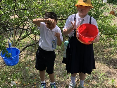 地域の方の梅の木をお借りして梅をとりました。