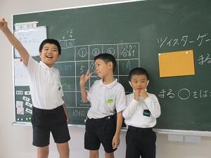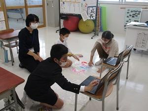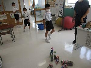 体をたくさん動かす活動をしようということで、自立活動ではツイスターゲーム作りに取り組んでいます。完成したら、みんなで楽しみたいと思います。時間の終わりには1学期に作ったボーリンクもやって、汗をかくほど一生懸命取り組みました。