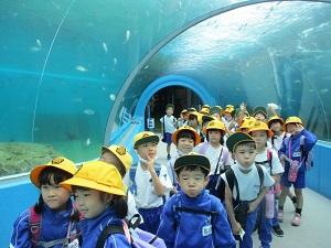 1年生は社会見学でのとじま水族館へ行ってきました。優雅に泳ぐジンベイザメなどの魚たちの様子を、想太さんもくぎ付けで眺めていました。ハロウィーン仕立てのイルカショーを見て、お弁当を食べて元気に帰ってきました!