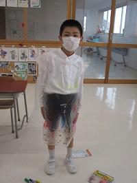 10月も半ばをすぎ、ハロウィーンも近づいてきました。そよかぜとわかば合同で自立活動の時間にハロウィーンパーティーを開こうと計画しています。今日は、袋を使って仮装の衣装を作りました。それぞれが描きたい絵を大きくいっぱいに描いて仕上げました。