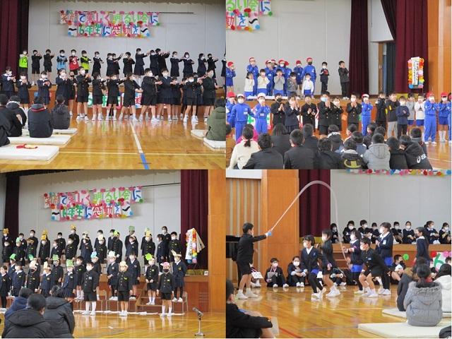 5年生は,手作り絵本の読み聞かせ,6年生は,けん玉と縄跳びを披露しました。
