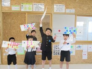 鯉のぼりは、好きな色のウロコを張り付けたり、描いたりして仕上げました。