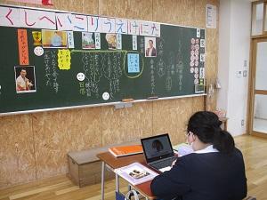 初日は,みんなそろって始業式を放送で聞くことができました。
