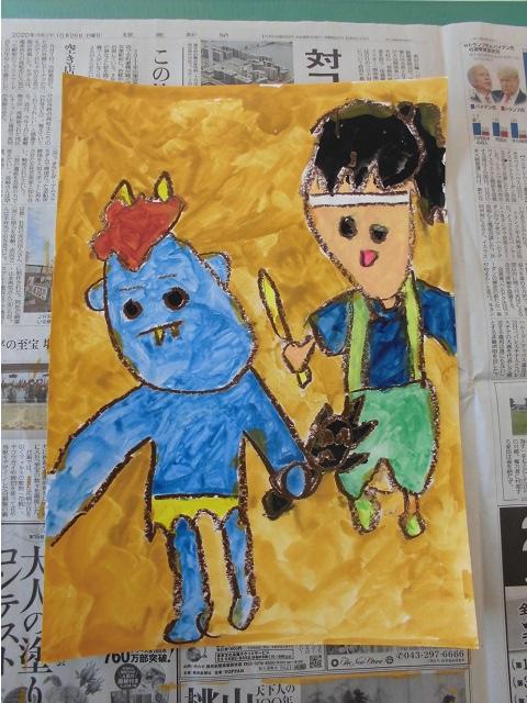 「見て見ておはなし」で読んだり聞いたりした物語から想像を広げ,いろいろな形や色などを捉えながら,表し方を工夫して絵に表すことをしました。
