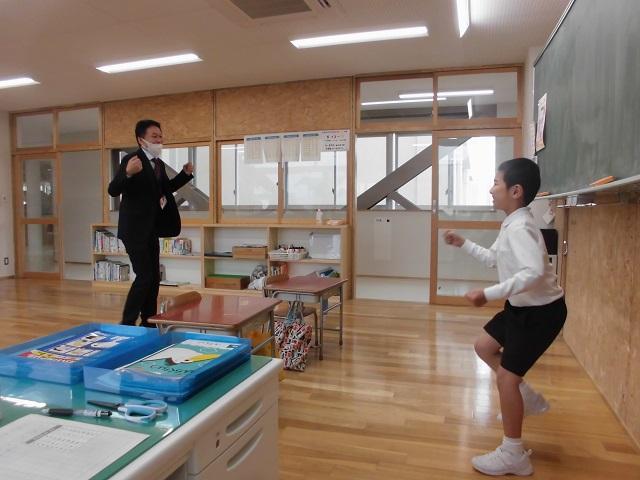2020年11月4日 16時01分校長先生と楽しそうにダンスをしています。