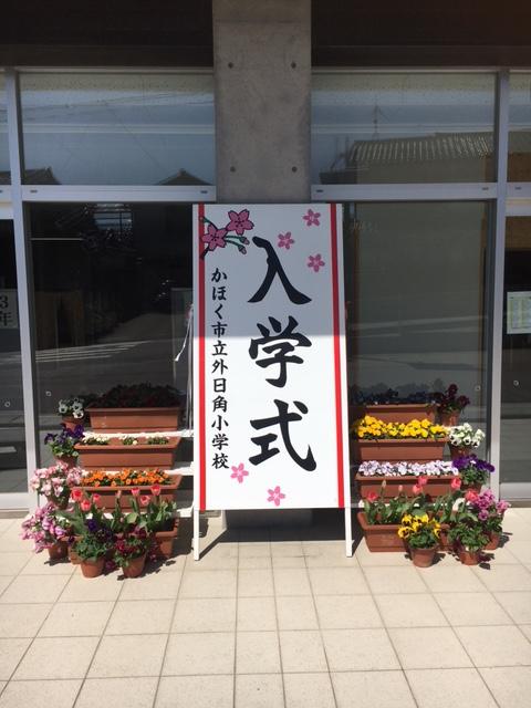 爽やかな春の陽ざしのもと、外日角小学校の入学式が行われました。