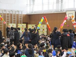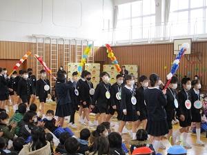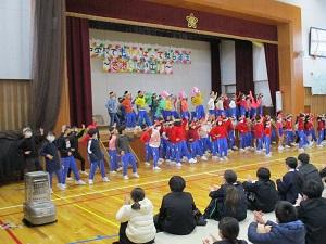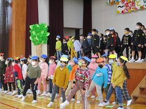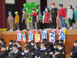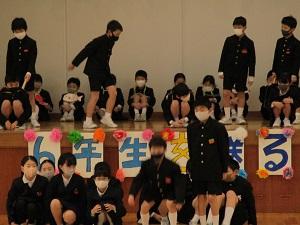 をスローガンに、全校児童が体育館に集い、お世話になった6年生に心いっぱいの感謝の思いを込めて「6年生を送る会」が行われました。