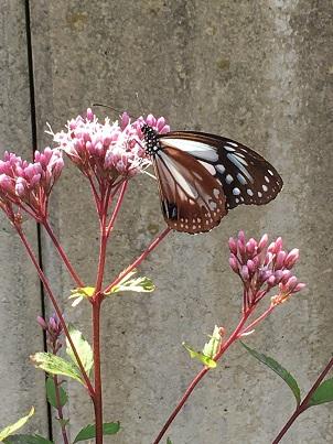 本日、10時30分頃に本校で育てているフジバカマに、2頭のアサギマダラが飛来しているのを発見しました。