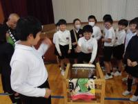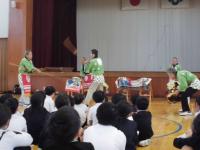 本日5、6時間目に、白尾区の獅子舞演舞・子供ホラホイの体験をしました。
