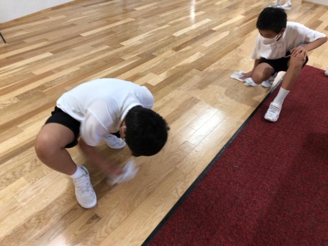 ある教諭が、廊下を拭いていると、6年生の男子二人が「先生、僕たちも手伝います。」と言って、濡れた廊下を一