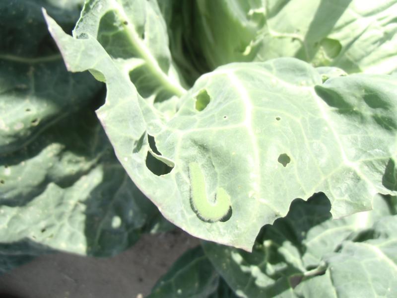 学校畑に植えてあるキャベツには、たくさんの青虫が育っています。