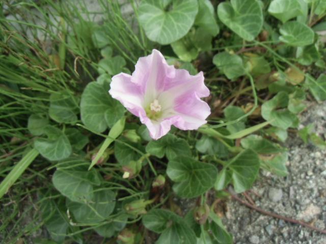 つる性多年草で、日本全土の海岸の砂地に生え、砂の中に白色の地下茎を長く伸ばしてふえるそうです。
