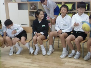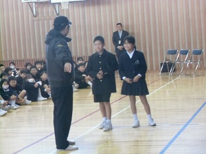 その後、体育館に移動し代表者が不審者から逃げる練習をしました。