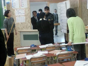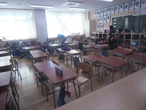 最初、低学年の教室に不審者が入った想定で、各教室で施錠、