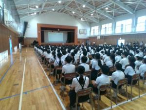 校長先生の話や生徒指導・学習の話を真剣に聞いていました。