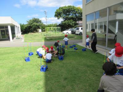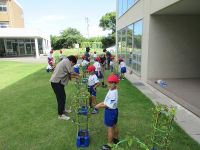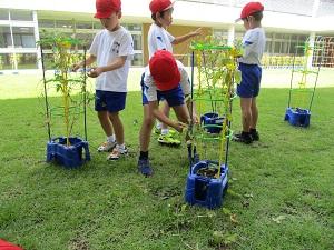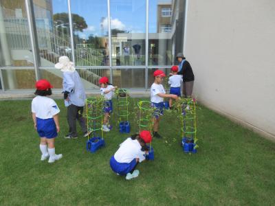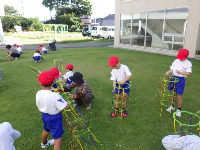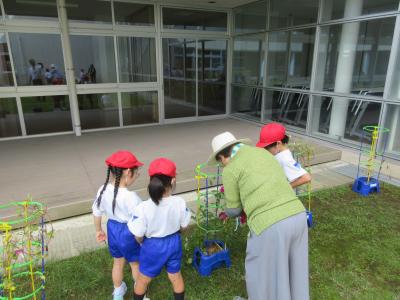 あさがおのつるがよく絡んで取るのが大変でしたが、地域の方にお手伝いもしていただき、