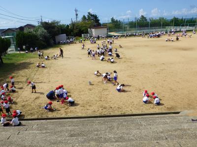 運動会が近いので、昼休みの時間を使って、全校除草を行いました。