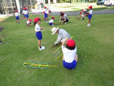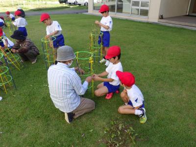 地域の方にも手伝っていただき、朝顔のつるを丁寧に外していました。