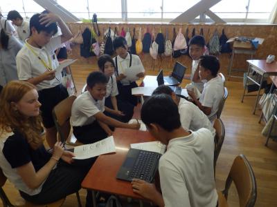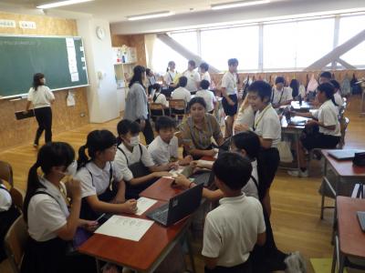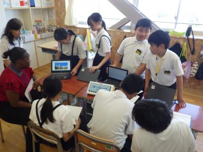 ALT、CIRを前にして緊張の6年生でしたが、準備したプレゼンを丁寧に紹介していました。