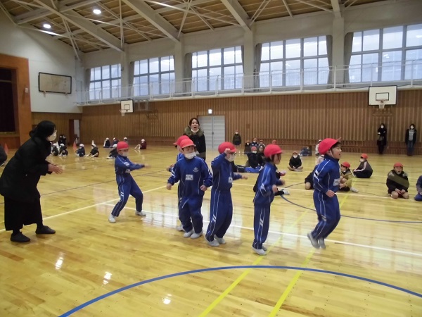 2019年2月1日 11時19分かぜの流行により延期となっていました1年生の長なわとび大会を行いました。