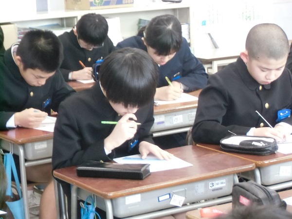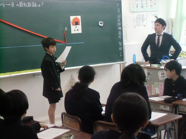 しかし、「自分の考えをもつことが一番大切である」「数学も、基本となる算数の考えを使って解くことができる」との先生のお話に子ども達は安心するとともに、小学校での学習をしっかり身につけることの大切さを感じたのではないかと思います。