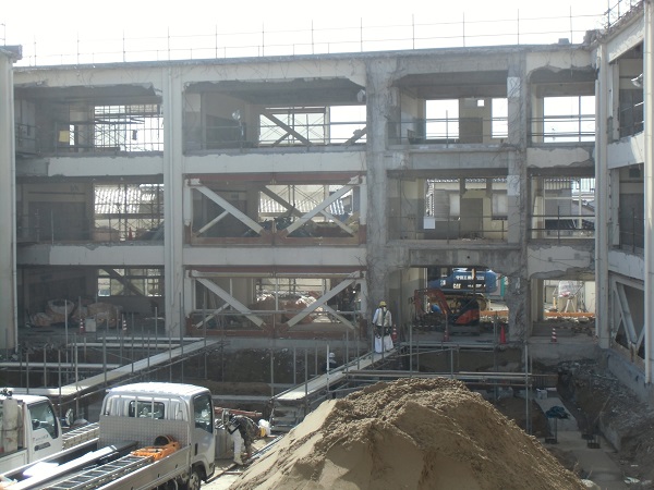 旧校舎の解体作業が進み、校舎の向こう側まで見えるくらい内部が空き空きになりました。