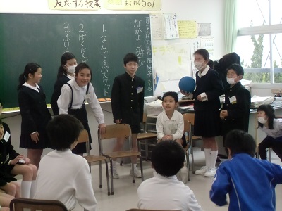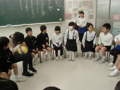 中学校の英語の先生が6年生を対象に授業をして下さいました。