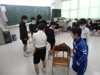 今日の昼休み、縦割り班でなかよし遊びを行いました。