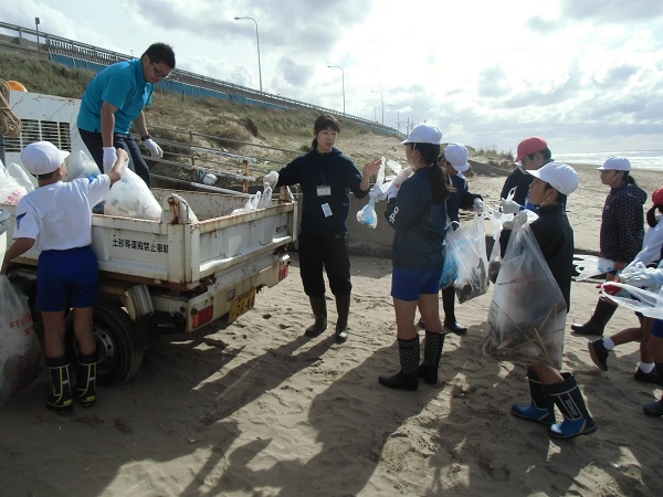 10月26日のマラソン大会に向けて、走る砂浜の清掃を行いました。