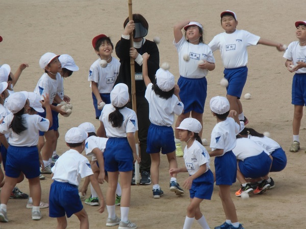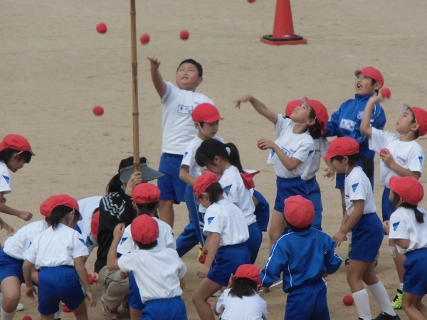 先週の1年生に引き続き、今日は2年生が玉入れを行いました。