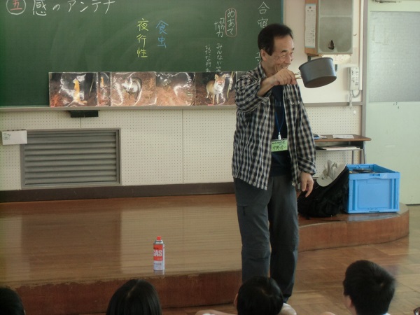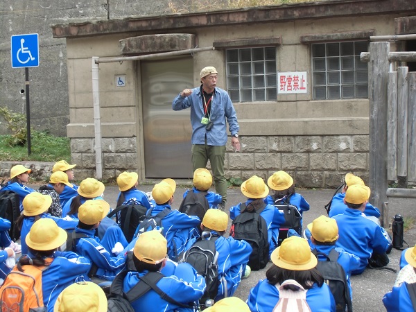 明日の宿泊体験学習の前に白山麓少年自然の家の講師の方が、お話をしに来校されました。