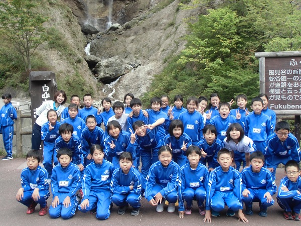 ふくべ大滝の前で集合写真 1組