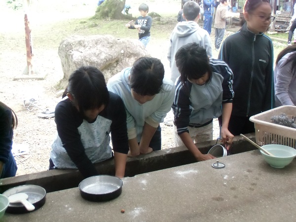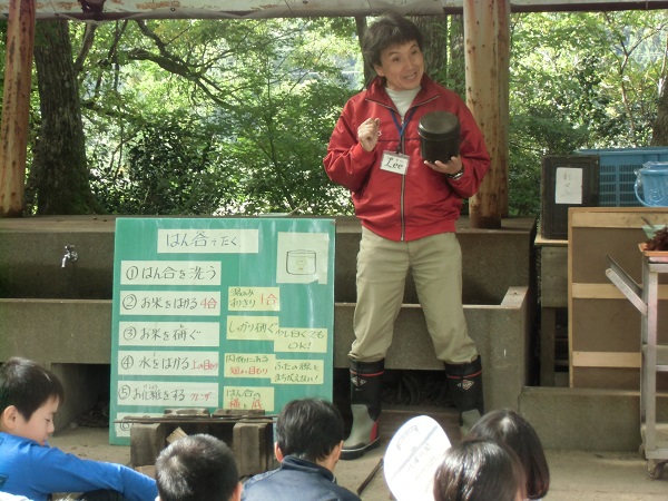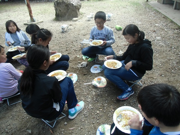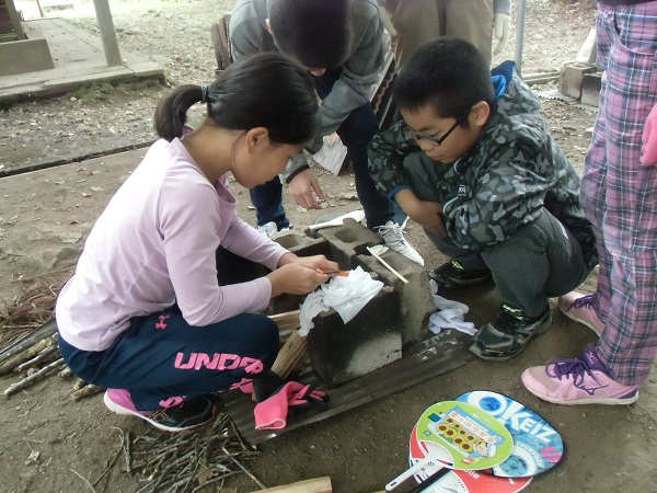 ご飯を飯盒で炊きます。火起こしや火の管理方法を学びました。