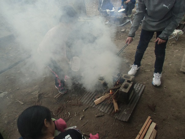 自然の家のリーさんに火のつけ方やご飯の炊き方を教わりました。